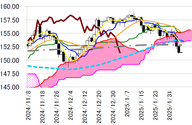 レジスタンス1 152.89(2/6 高値))
