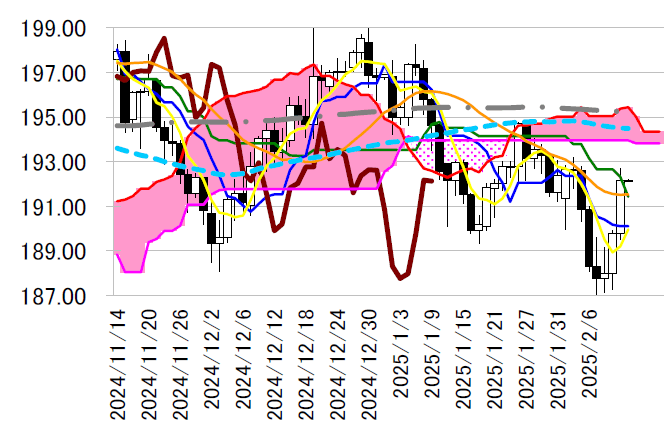 日高値192.68 円を超えるようならば、雲下限に向けて上値