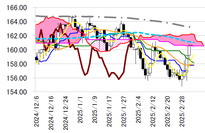 る攻防が注目される。雲の中で上昇力を強めた場合、161 円