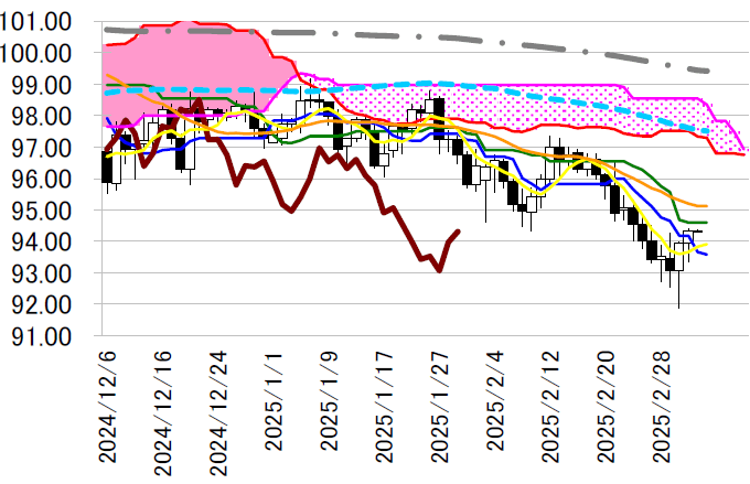 サポート1 93.66(日足一目均衡表・転換線)