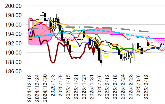 先週末は雲の中でじり高となる底堅さを示した。192.93 円前
