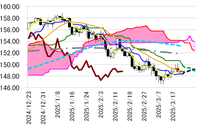から低下が予想される一目・基準線が交差する149 円付近へ