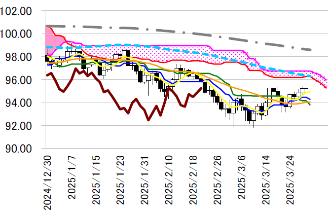 サポート1 94.42(3/27 安値)
