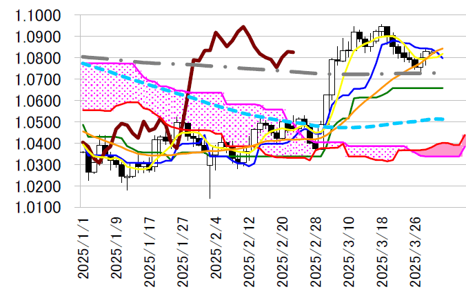 転換線は1.0840 ドルまで低下し、明日以降も下向きを示