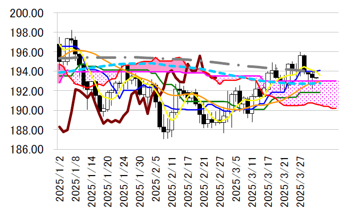下向きの200 日線は本日193.91 円、その上194.01 円には