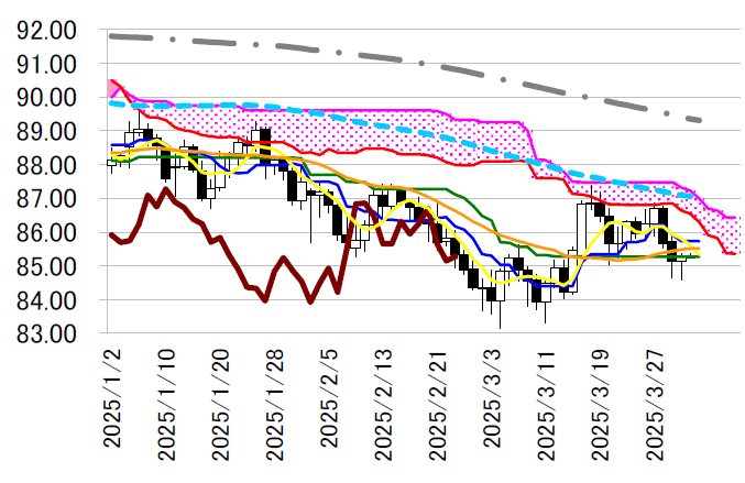サポート1 84.59(4/1 安値)