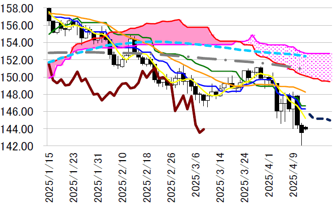 衡表・転換線146.28 円など下向きの流れを感じさせるテク
