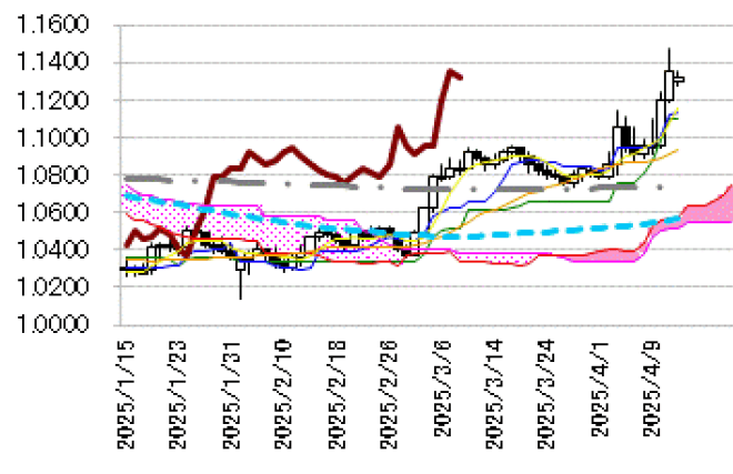 を示すとみるが、4 月3 日高値1.1144 ドルを割り込むような