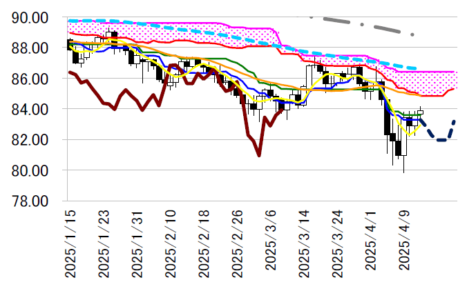 現状からすれば一目均衡表・転換線83.29 円は一時82 円割