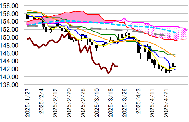 円半ばには200 日線が控える。161 円前半に基準線も位置す