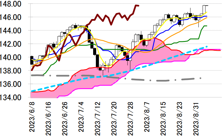 サポート 1 146.13(日足一目均衡表・転換線)