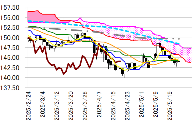 あるが、同線を暫く睨みながらの取引か。144.60 円台の21