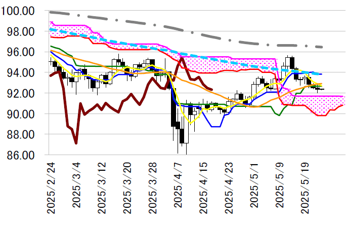 サポート1 91.69(日足一目均衡表・雲の上限)