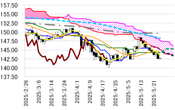 になりそうであり、143.50 円付近で低下中の5 日移動平均線