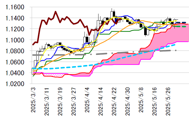 サポート1 1.1298(5/29 レンジ半値水準)