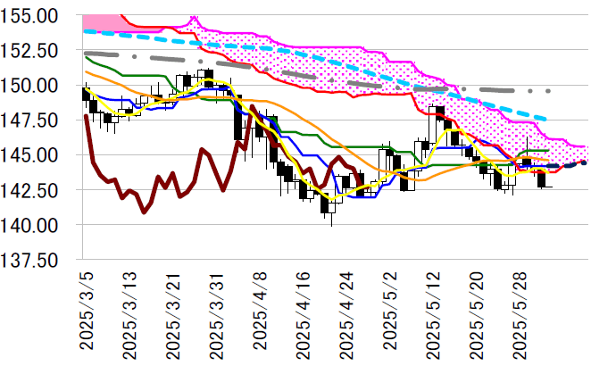 ち直しを期待したいところだが、143.70 円前後で低下中の5