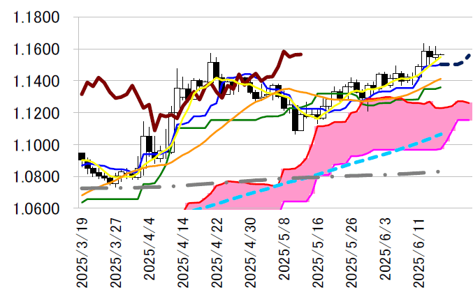 の一目均衡表・転換線1.1502 ドルの動向が示唆する底堅い