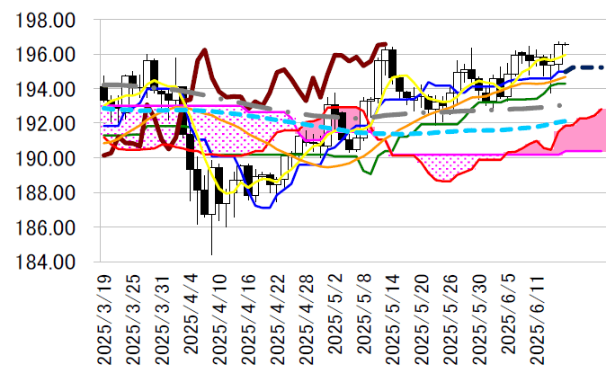 来の高値196.69 円まで上昇した。5 カ月ぶりの高値圏で調整