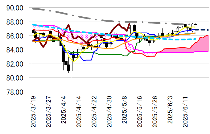 サポート1 86.82(6/13-16 上昇幅の半値押し)