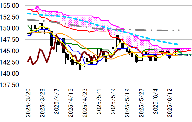 らすれば転換線の低下は144.09 円までとわずかな値幅。押
