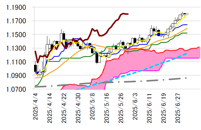 た。本日1.16 ドル半ばの日足一目・転換線は明日にも1.17