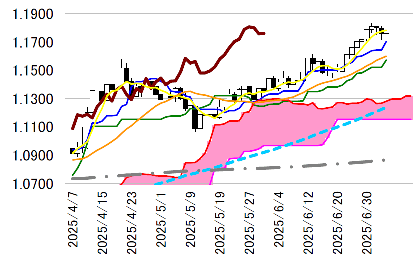 日足一目・転換線は1.1702 ドルまで上昇し、来週も水準