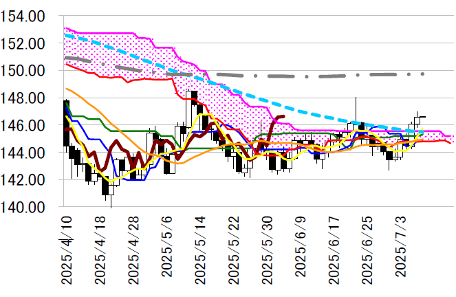 表の雲上限145.55 円にタッチすることなく切り返すと、