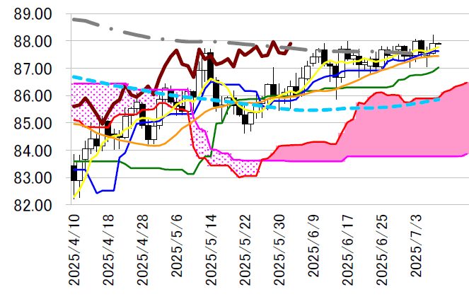 ドル円は、トランプ関税の交渉期限が8月1日まで延期されたことで、29-30日の米連邦公開市場委員 会(FOMC)や30-31日の日銀金融政策決定会合では「不確実性」を理由に金融政策の維持が見込まれるこ とや、米10年債利回りの上昇基調を背景に堅調推移が予想される。