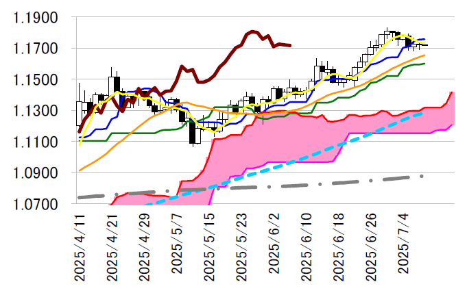 や日足・一目均衡表の転換線1.1756 ドルを上抜けると1 日