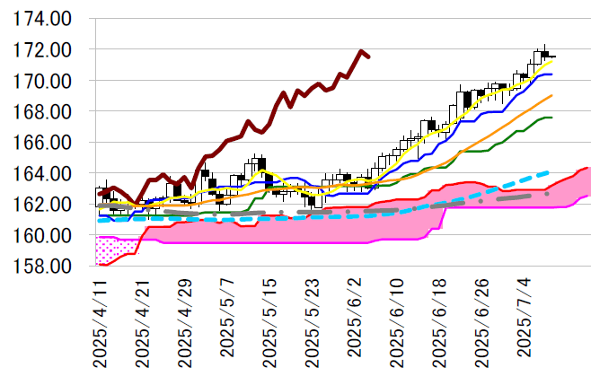 日足・一目均衡表の転換線170.37 円のサポート力を試す展