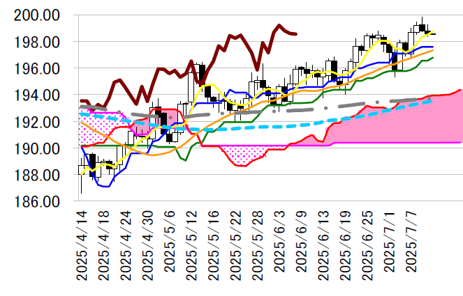 能性が出てきそうだ。日足・一目均衡表の転換線197.60 円