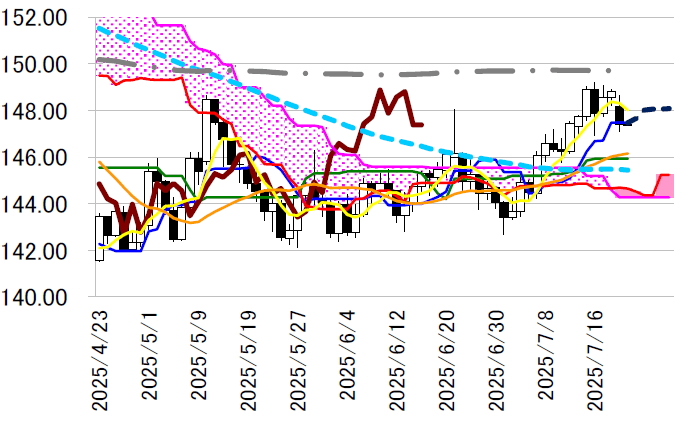 円が買われるリスク要因として、昨日石破首相が続投の意向を正式に表明し、対米交渉に関しては「米 関税措置は8月1日の節目を念頭に合意目指す」との見解を示したこと。どの政治家が首相になった場合 でも、米国との関税交渉は、多くの国民や自民党支持の農業団体から非難を浴びる可能性が高い。レーム ダック化した石破政権に日米交渉を押し付けた方が、次期首相候補も望ましいと思っているだろう。本格 的な石破降ろしとなるのは、日米交渉で合意した後になるか。もし、日米交渉の合意を期待する声が高ま れば、これまで売られていた円が買い戻されることもありそうだ。