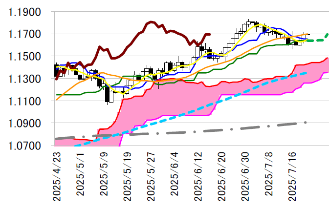 た。戻りを試しても低下中の一目・転換線1.1661 ドルが抵