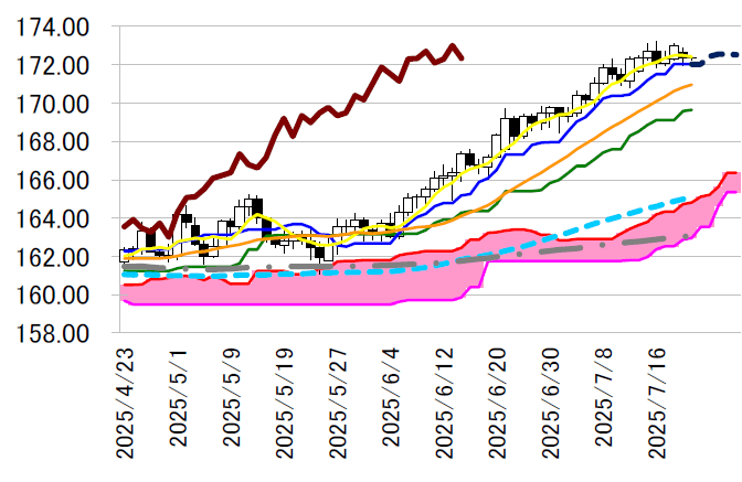 し一目均衡表・転換線172.03 円を割り込んだ同水準から戻