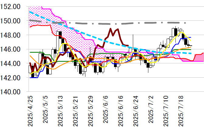 一目均衡表・基準線145.93 円の下抜けもうかがうリスクが