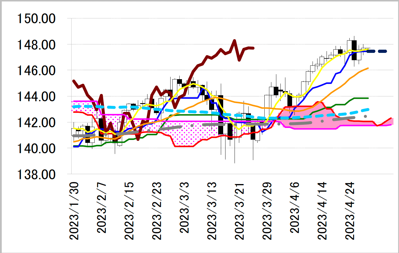 レジスタンス1 148.62(4/25 高値=年初来高値)