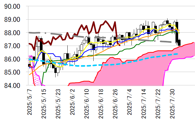レジスタンス1 87.86(7/31 安値)