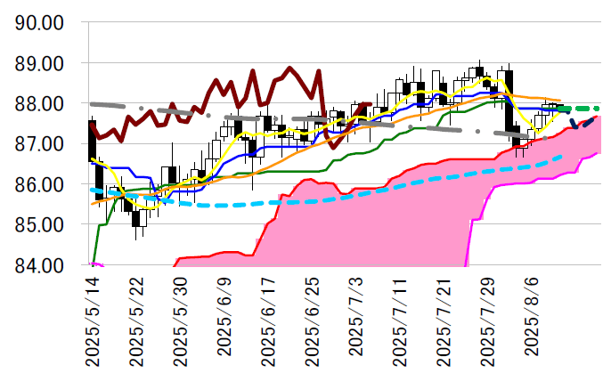 サポート1 87.25(日足一目均衡表・雲の上限)