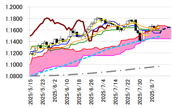 いる。本日 1.1674 ドルへ小幅に切り上がる雲上限付近から