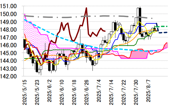 レジスタンス 1 148.52(8/12 高値)