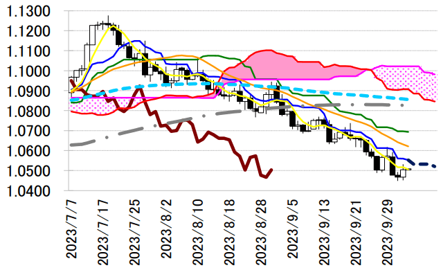 し返されやすい状態が続くとみる。1.05 ドル台で低下中の一