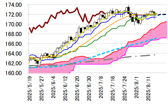 円台へリバウンドしている。一目均衡表・基準線 171.85 円を
