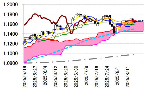 雲の上限 1.1673 ドルを割りこんでしまい、早々に三役好転