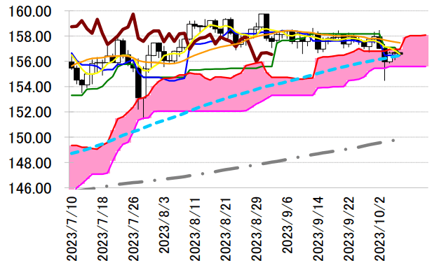 レジスタンス 1 156.94(10/2-3 下落幅の 61.8%戻し)