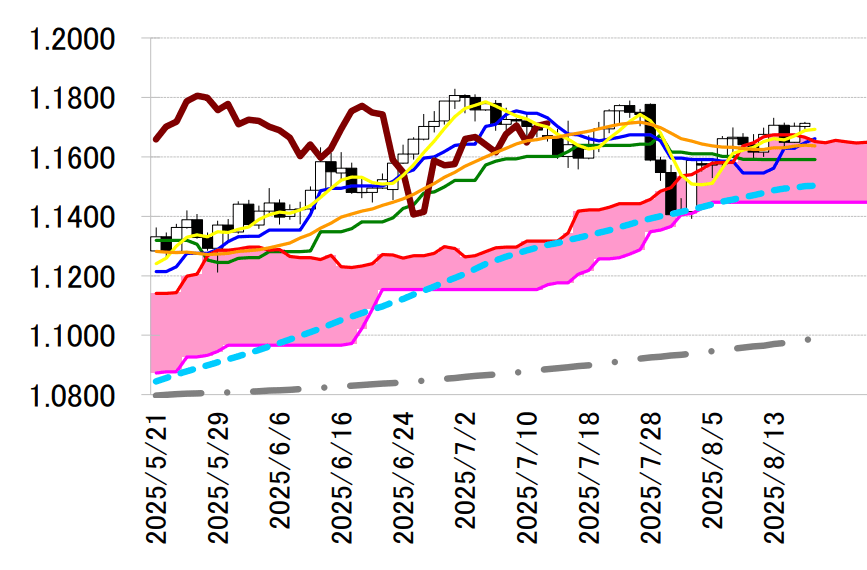 上値めどは 7 月後半に頭を押さえられた 1.1789 ドル。