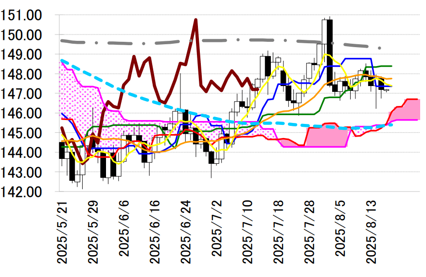 持となれば、148.39 円の一目・基準線が目標値と想定。
