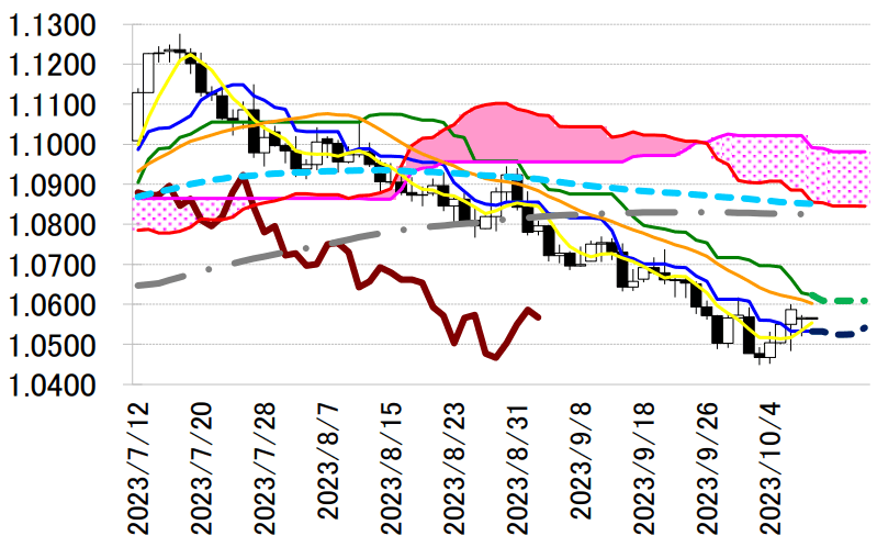 均線や一目均衡表・基準線 1.0623 ドルといった抵抗が上値