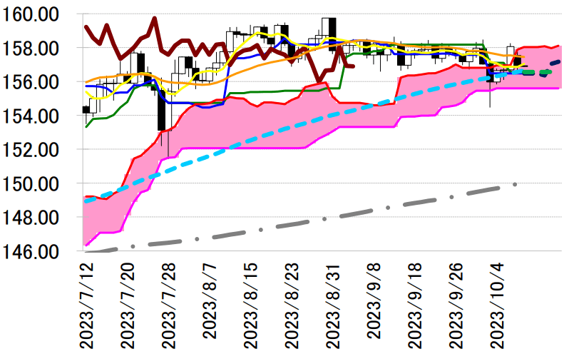 こなすことができず 156 円台へ下押している。一目均衡表・