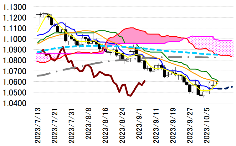 均衡表・基準線を試す動きとなった。1.06 ドル付近で低下中