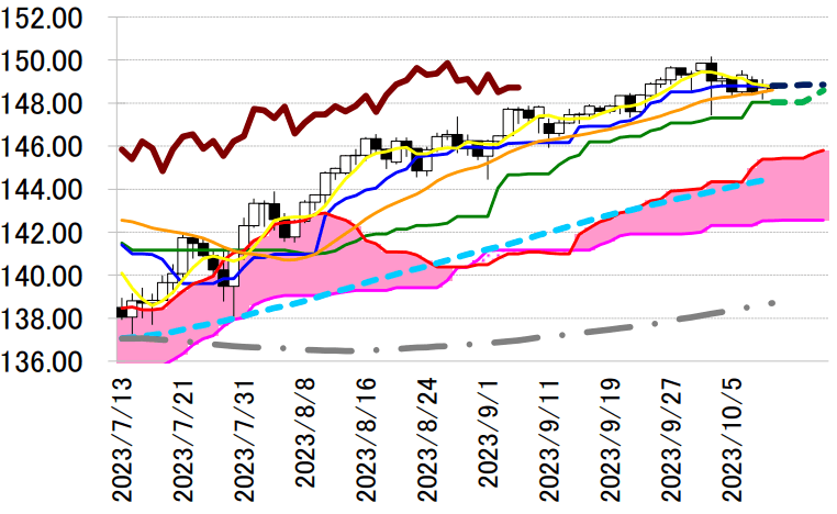 れない。現状からすれば転換線は来週にも 148.85 円へいっ
